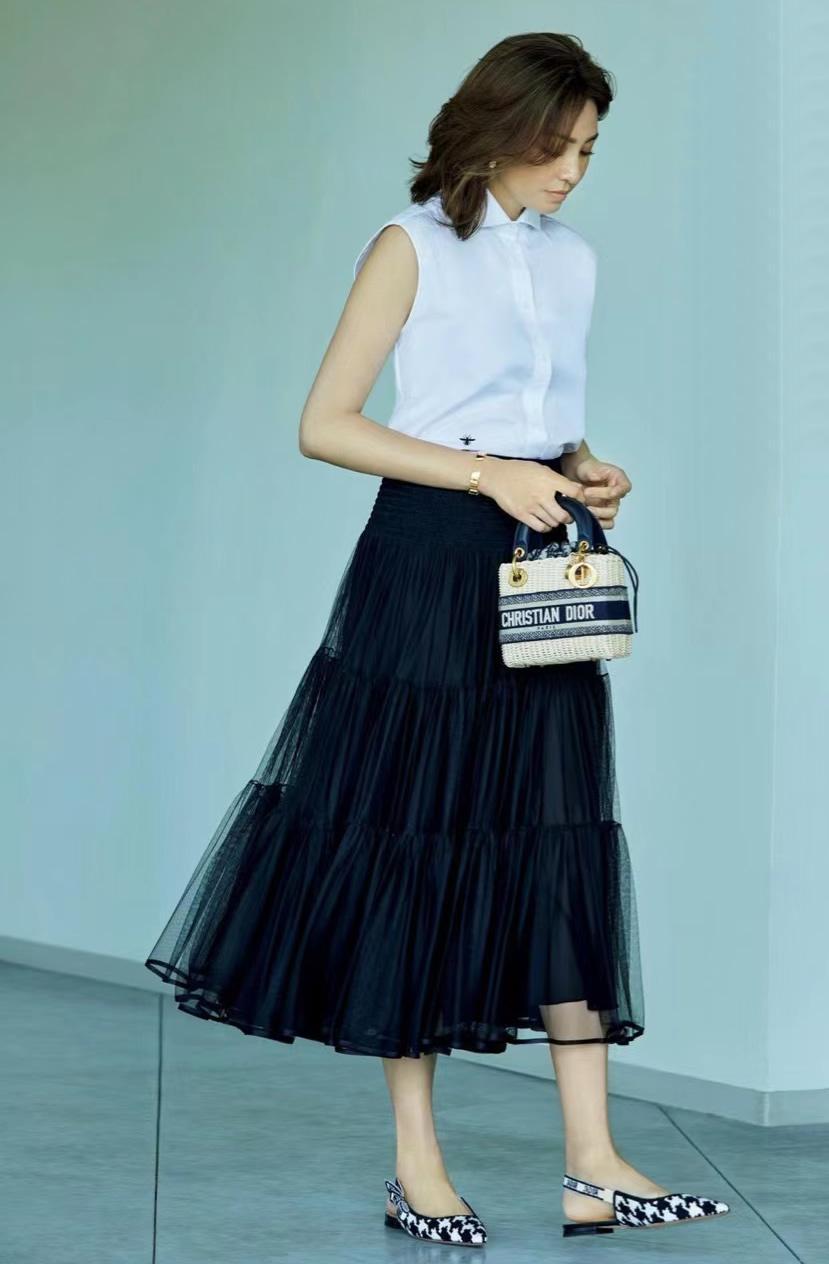 宇宙看达东谈主的穿搭示范,无袖白色衬衫上衣搭配薄纱面料的赫本裙,就能卤莽穿出高档感,况且口角两个情态组合搭配,显得很干练抽象,阻碍易出错。