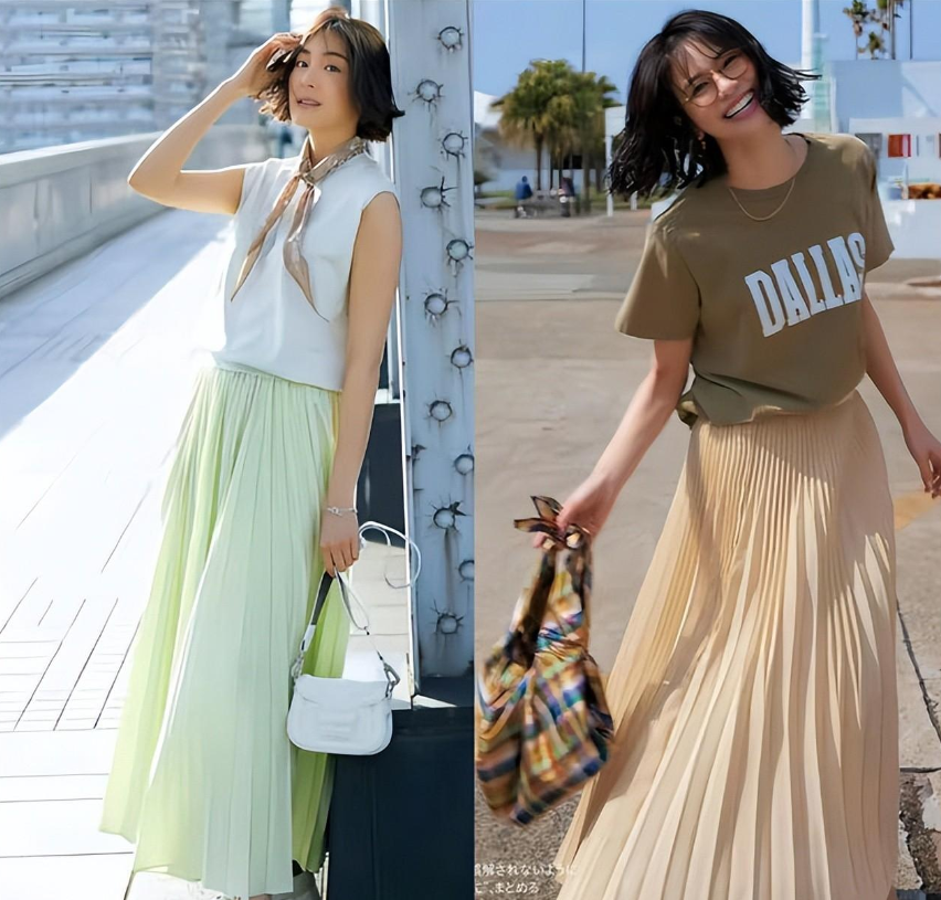 夏天是展现女性魔力的最好季节,而关于中年女性而言,怎么穿出优雅、自信的气质,成为了她们最为温雅的问题。而在这个盛暑暑日,T恤+百褶裙的搭配成为了中年女性们的首选。穿搭对了也能卤莽穿出高档感,变得愈加洋气,让你魔力全开。
