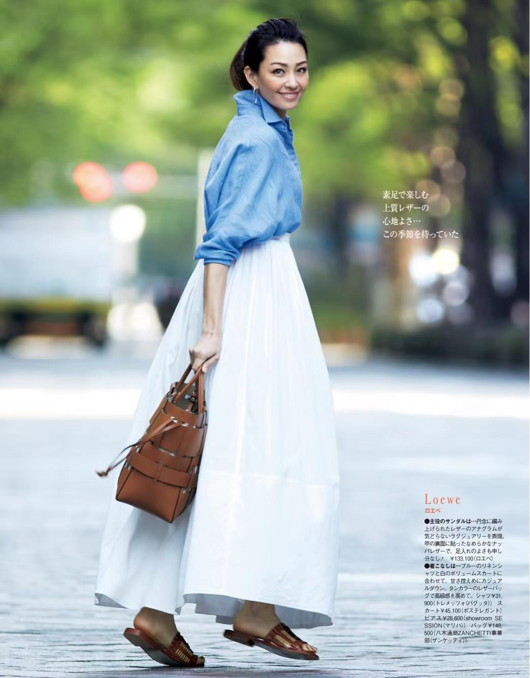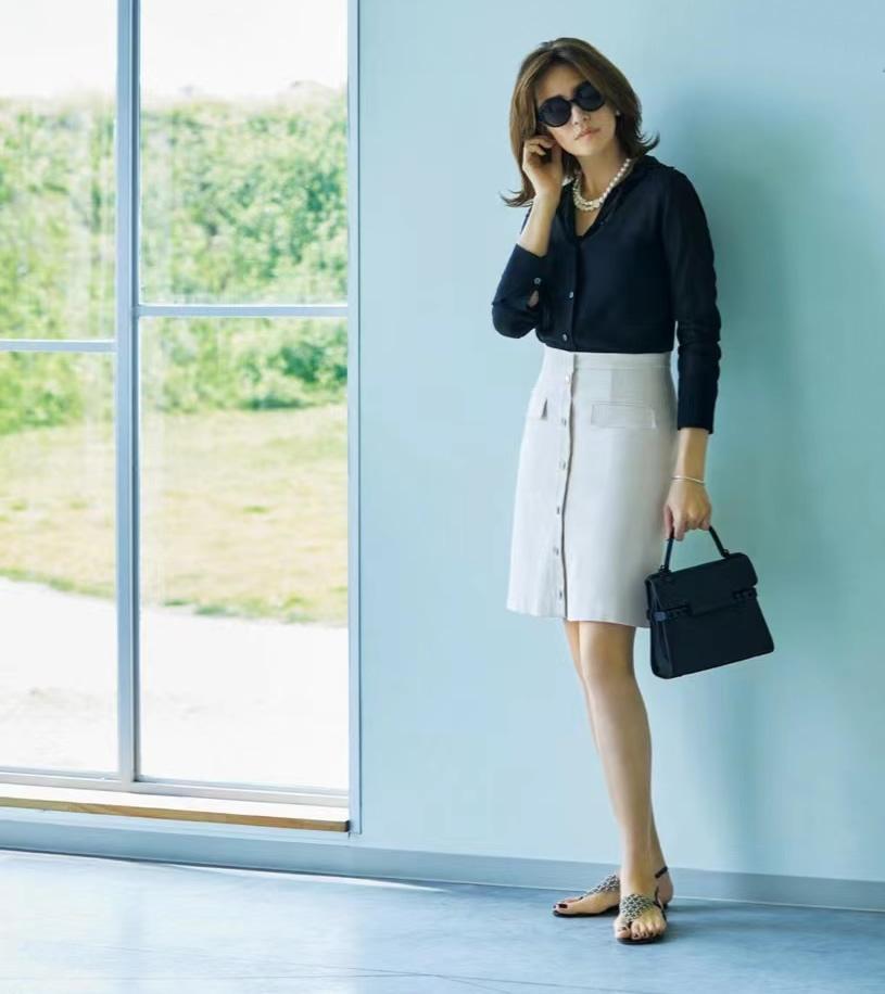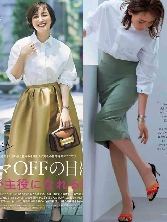 二、夏令,3、40+女东谈主实用性衬衫+半身裙穿搭参照~