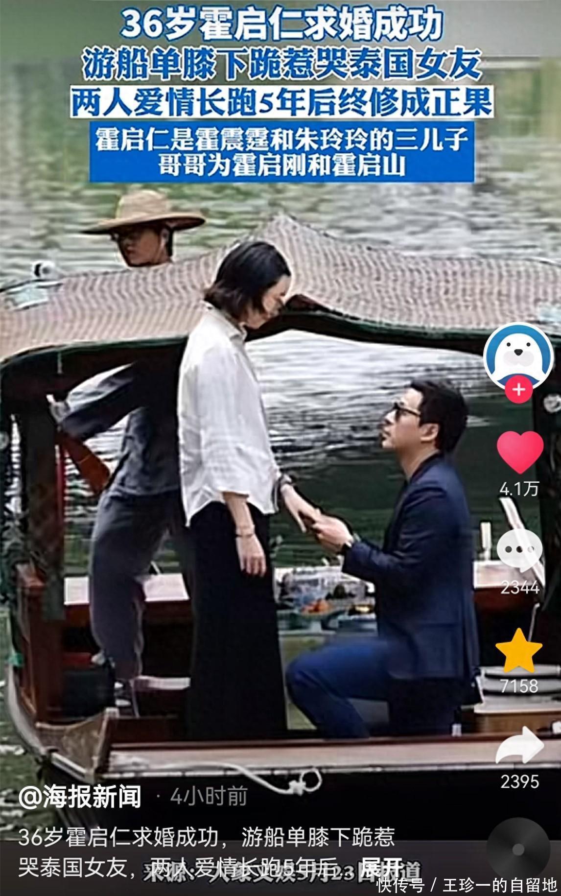 5月23日中午,本年仍是36岁的霍启仁在酬酢账号上公布了向女友求婚到手的讯息。