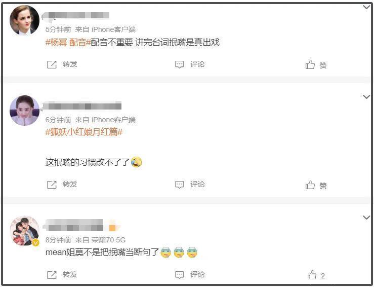 不知谈是不是为了演绎涂山红红的霸气高冷,这回杨幂不仅说台词要抿嘴,站那不动的时分皆要抿上一抿了。